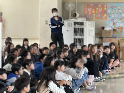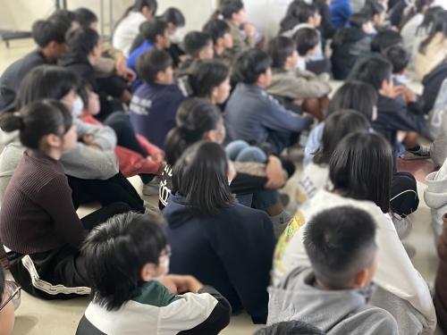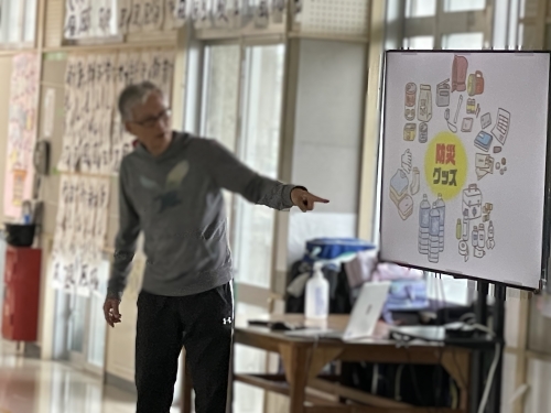 実際の体験者からのお話は、非常に重みがあり、子どもたちは、当時の災害の激しさや避難所での暮らしの様子を、食い入るように集中して聞いていました。