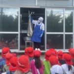 調理員さんが見せてくれた大きなマンビカーにびっくり!