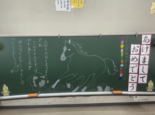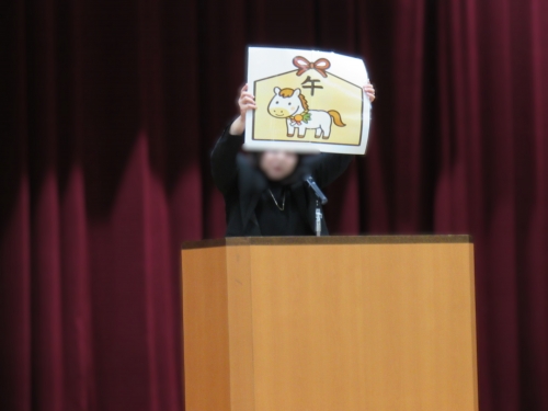 校長先生からは、今年の干支である「午」にちなんだお話があり、「2学期までに身につけた力をエネルギー(燃料)にして、自分の目標に向かって馬のようにたくましく進んでいこう」 という激励とこれまでの頑張りを自信に変えて、さらに飛躍する一年にしてほしいというメッセージがありました。