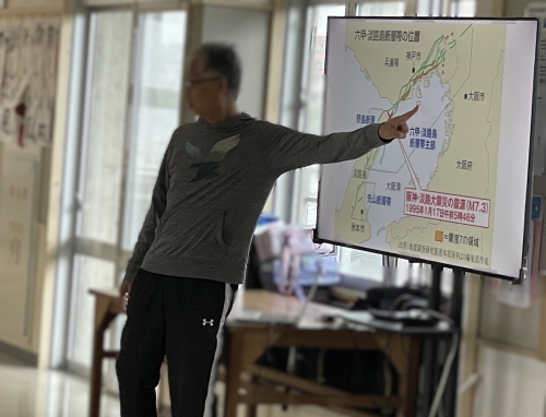 実際の体験者からのお話は、非常に重みがあり、子どもたちは、当時の災害の激しさや避難所での暮らしの様子を、食い入るように集中して聞いていました。