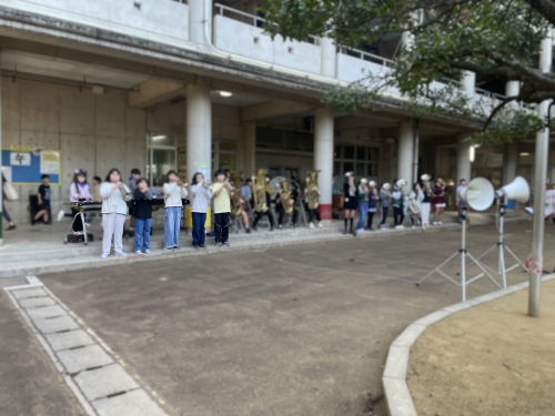 音楽部の奏でる美しいメロディに乗せて、全員で「がじゅまる」の歌を合唱。